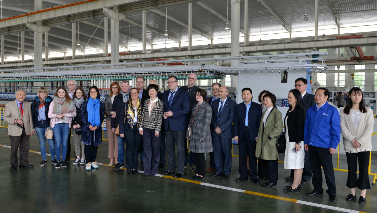 費澤爾市長(前排左3)一行在公司董事長沈方勇陪同下參觀天門紡機