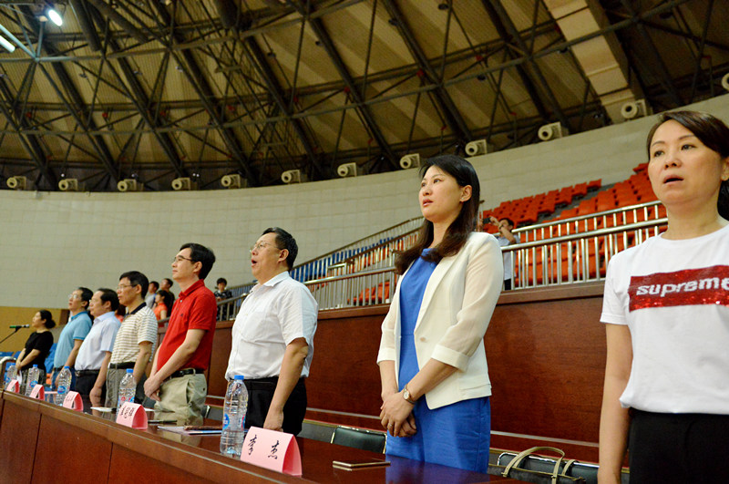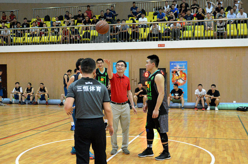 中國紡織工業聯合會副會長、中國化學纖維工業協會會長端小平宣布比賽開幕并為籃球賽開球。