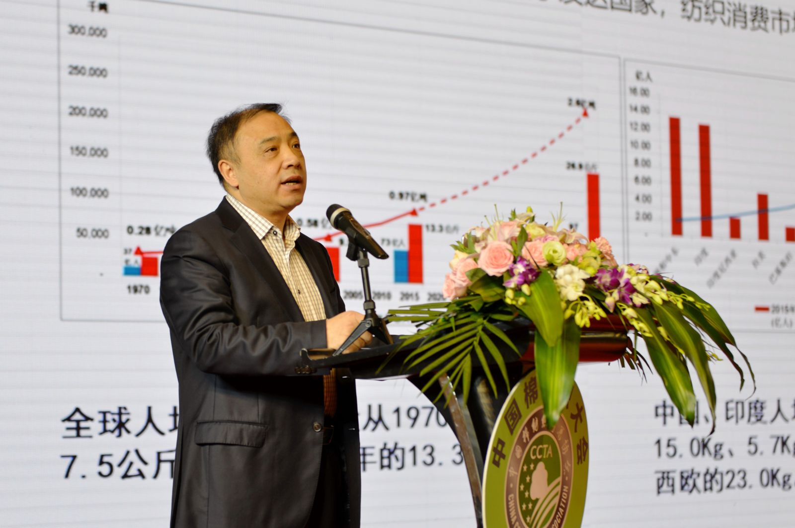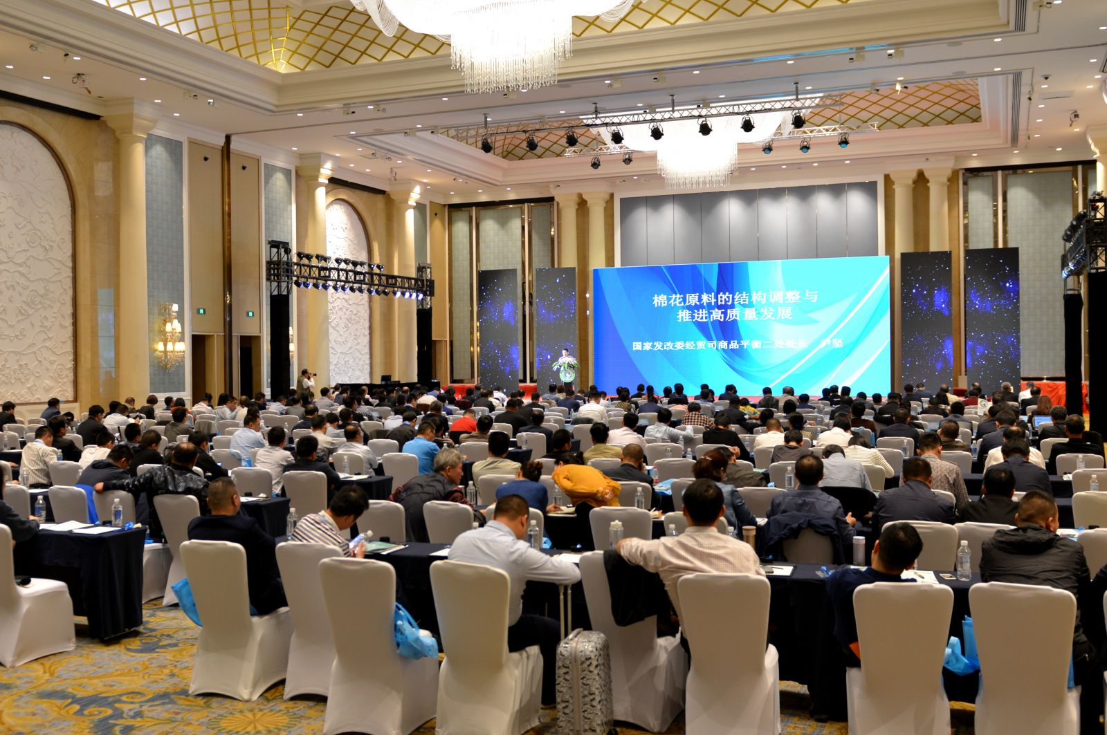 工業和信息化部消費品工業司副司長曹學軍,中國紡織工業聯合會副會長、中國化學纖維工業協會會長端小平,國家發改委經貿司商品平衡二處處長尹堅,紡織產業經濟研究院副院長趙明霞等領導和嘉賓從“棉紡織行業的現狀及面臨的挑戰”、“棉花和化纖關系”、“中美貿易戰對紡織行業的影響和應對措施”、“企業所關心的棉花配額問題”諸方面進行了權威解讀。