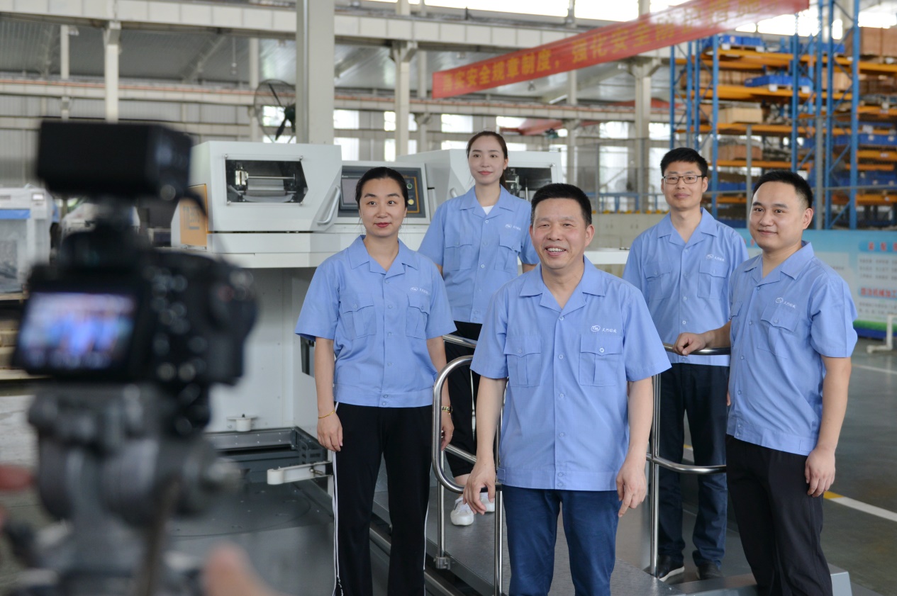 由中國互聯網發(fā)展基金會、中央廣播電視總臺央視網、天門市網信辦聯合制作的【《人民記憶 70年70城》記住天門】形象片于2019年8月7日上午在湖北天門紡織機械股份有限公司開機。公司董事長沈方勇和部分員工代表在天門紡機生產現場配合攝制組完成了相關拍攝任務,沈方勇在介紹企業(yè)時說:幾十年來,我和我的伙伴們致力于實體制造業(yè)的轉型升級和創(chuàng)新發(fā)展,心無旁騖抓技術改造、產品研發(fā)和企業(yè)管理,不斷提高市場競爭力和行業(yè)地位,把天門紡機從一家小型農具廠發(fā)展成為支柱產業(yè)細分領域銷售隱形冠軍科技小巨人和全球知名并條機供應商。在展望未來時,沈方勇面對鏡頭表露出堅毅豪邁之情:新中國成立70年,我們將扛起制造業(yè)引擎大旗,讓智能制造之歌在天門唱響!祝福祖國70華誕生日快樂!