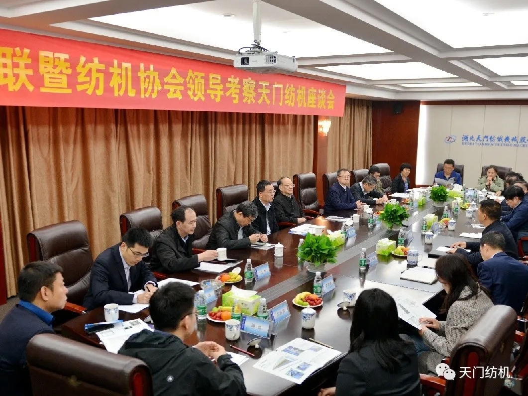 4月14日,中國紡織工業聯合會黨委書記兼秘書長高勇,在中國紡織機械協會會長顧平的陪同下,帶領紡機協會相關部門負責人到天門紡機調研。天門市委副書記、市長楊興銘,副市長高文博以及市經信局局長張文輝陪同參與調研活動。
