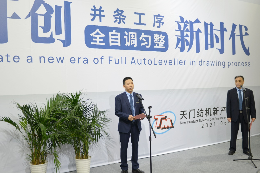 天門紡機(jī)董事沈方勇向出席會(huì)議的行業(yè)領(lǐng)導(dǎo)、專家和嘉賓表示熱烈歡迎和誠摯的謝意,并表示,并條工序全部實(shí)行自調(diào)勻整是公司在智能紡織裝備研發(fā)上跨出的重要一步,將開創(chuàng)棉紡并條機(jī)一個(gè)新時(shí)代,將對(duì)紡紗企業(yè)裝備提檔升級(jí)、產(chǎn)品提質(zhì)增優(yōu)作出重要貢獻(xiàn)。公司愿意做好踏腳板、鋪路石,為紡織工作智能制造貢獻(xiàn)綿薄之力。