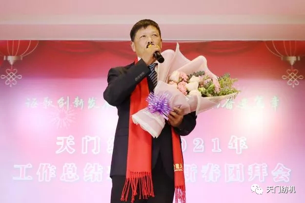 董事長沈方勇致熱情洋溢的新春賀詞,他表示,天門紡機走過了激情奮斗、碩果累累、超越自我的2021年,回首“退城進園”、轉型陣痛、市場洗禮、疫后重生的十年,公司“專精特新”的發展之路不曾改變,研、產、供、銷的“六高”閉環不曾動搖,“單項冠軍產品”的頭銜始終沒有丟失,技術創新度、品牌知名度、市場占有率、產品附加值同步提升、屢攀新高。感恩偉大祖國,感激業界同仁的支持信賴,感謝全體員工的團結拼搏、風雨同舟、辛勤付出!