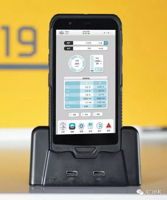 天門紡機緊密結(jié)合并條工序的特點,成功運用了集多種功能于一體的工業(yè)級手持終端,可以對T1系列并條機實施穩(wěn)定、可靠、精準的無線操控。