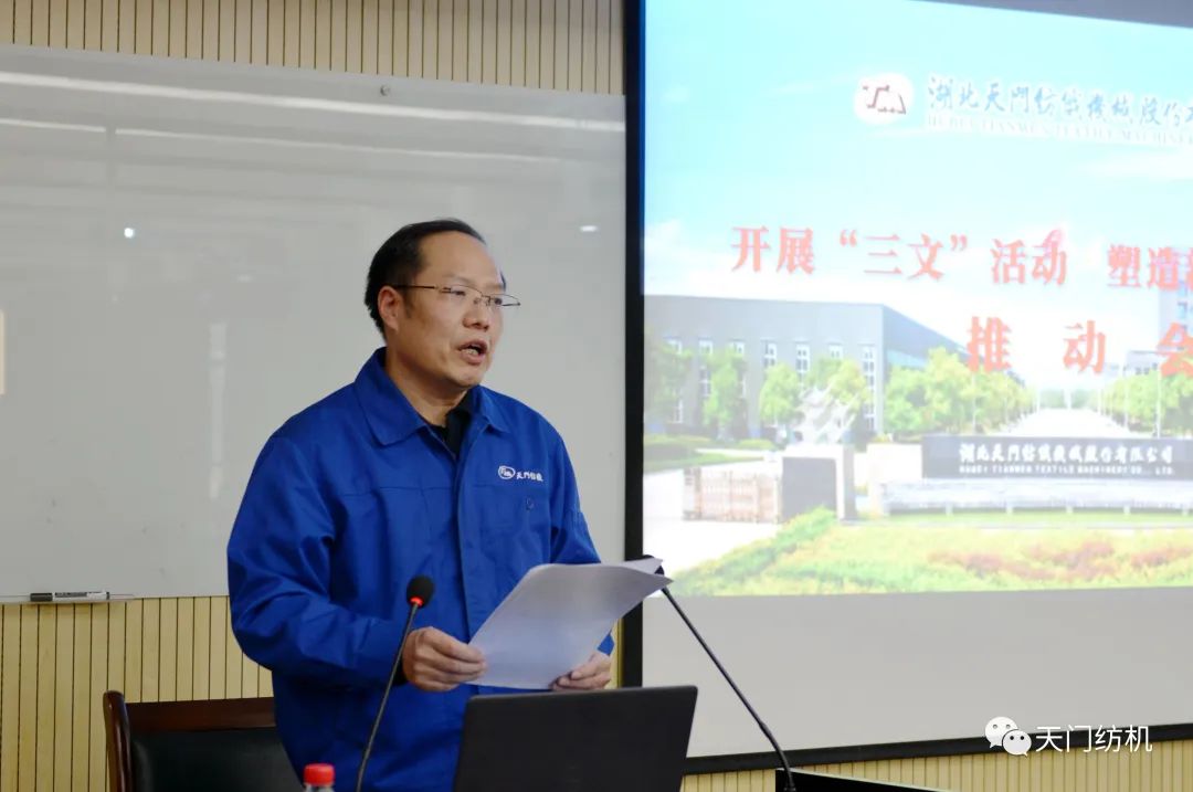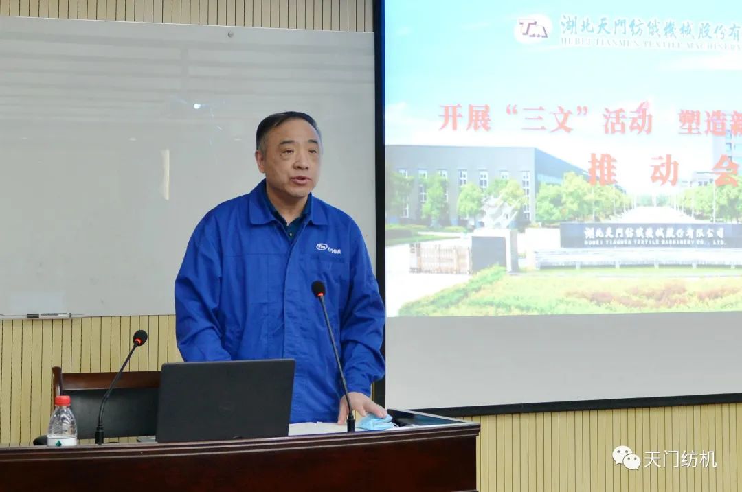 魯?shù)挛囊螅皇墙y(tǒng)一思想,提高認識:“三文”活動的理念既是在當(dāng)前國際形勢復(fù)雜多變、新冠疫情反復(fù)無常、國內(nèi)經(jīng)濟受到嚴重沖擊、行業(yè)形勢日趨嚴峻的背景下提出的,目的和意義只有一個,就是要通過“三文”活動全面提高員工素質(zhì)、塑造新型員工隊伍、建立現(xiàn)代企業(yè)管理制度、實現(xiàn)高質(zhì)量發(fā)展,以應(yīng)對復(fù)雜多變的國內(nèi)外經(jīng)濟形勢,讓天門紡機立于不敗之地;“三文”活動的理念也是公司的一種文化傳承。十多年前,公司制定實施“提精神、創(chuàng)精品、當(dāng)精英”的“三精”戰(zhàn)略,并以此為引領(lǐng),推動新產(chǎn)品開發(fā)、技術(shù)改造、品牌建設(shè)等工作,促進企業(yè)快速發(fā)展;兩年前,公司提出優(yōu)化社會、市場、內(nèi)部“三個”生態(tài)的理念,通過營造“以人為本”的內(nèi)部生態(tài)、共生共享的社會生態(tài)、利他共贏的市場生態(tài),把包容、共享、全球化的發(fā)展理念貫徹到企業(yè)生產(chǎn)經(jīng)營之中,影響到行業(yè)及社會多個層面,使公司形象得到極大提升、軟硬實力與日俱增,推動了企業(yè)高發(fā)展。“三文”與“三個生態(tài)”一脈相承,著重于員工素質(zhì)教育、塑造新型員工隊伍、營造良好的內(nèi)部生態(tài),其落腳點和最終目標(biāo)與后者是完全一致的。同時,開展“三文”活動是企業(yè)文化建設(shè)永不過時、永遠不可或缺的重要內(nèi)容。通過文明禮儀教育,提高員工個人素質(zhì)、樹立企業(yè)良好形象,是當(dāng)前公司生產(chǎn)經(jīng)營和優(yōu)化人力資源的內(nèi)在需要;通過開展文化素質(zhì)提升活動,引導(dǎo)員工樹立正確的世界觀、人生觀、價值觀是員工自身工作、生活和企業(yè)文化建設(shè)的主觀要求;通過文體活動,促進員工心身健康、增強企業(yè)凝聚力是企業(yè)和員工共同的美好愿望。因此,我們要把“三文”活動上升到企業(yè)生產(chǎn)經(jīng)營和文化建設(shè)一個更新的高度。二是明確特點,創(chuàng)新亮點:“三文”活動是長期性活動,是全方位的活動,是全員參與的活動,因此,我們一要堅持不懈,不斷努力;二要各方配合,通力協(xié)作;三要全體總動員,積極投入到各項活動中。同時,我們要多出主意、多想點子,創(chuàng)新活動的方式方法或形式內(nèi)容,創(chuàng)建天門紡機特色文化、特有文化和經(jīng)典文化。三是增強責(zé)任感,層層抓落實:在“三文”活動的通知中,我們已經(jīng)確定了組織機構(gòu),明確了目標(biāo)任務(wù),希望公司各部門負責(zé)人、活動小組各位負責(zé)同志,切實擔(dān)起責(zé)任,抓好落實。四是科學(xué)制定計劃,注重實效:我們在制定計劃時,既要合理安排時間,兼顧公司正常的生產(chǎn)經(jīng)營,又要統(tǒng)籌安排,協(xié)同推進,使生產(chǎn)經(jīng)營與文化建設(shè)相得益彰。