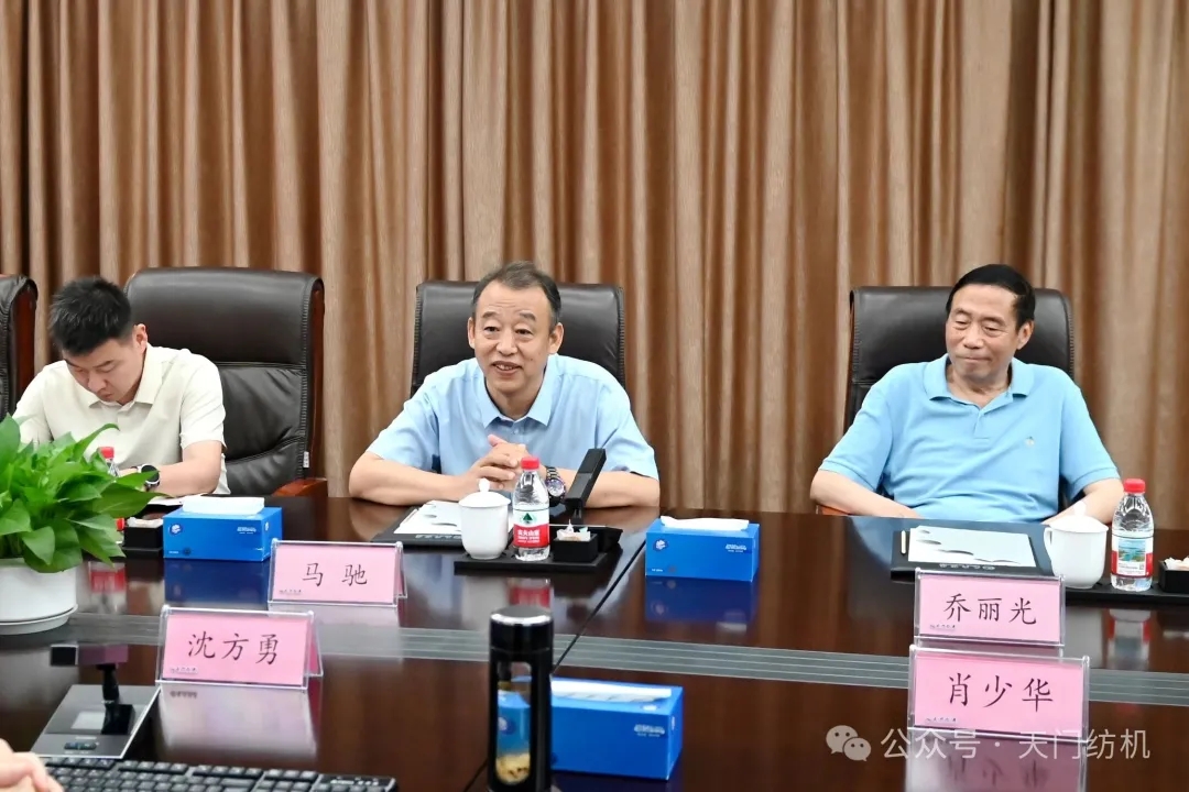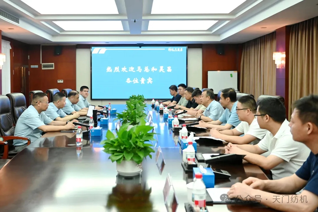 2025年6月30日上午,河南昊昌精梳機械股份有限公司董事長馬馳率高管及中層干部一行9人蒞臨天門紡機,傳經(jīng)送寶。公司董事長沈方勇率隊熱情接待到訪客人,雙方圍繞企業(yè)發(fā)展進行了深入交流。