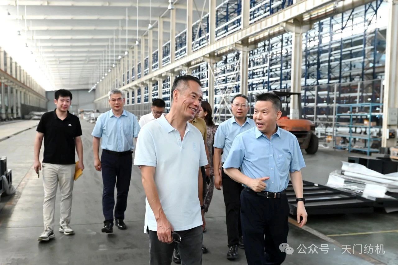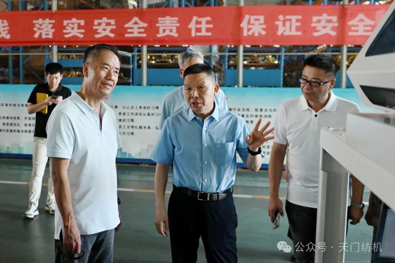 孫偉挺董事長一行在沈方勇董事長的陪同下,深入車間一線,親身感受了天門紡機繁忙的生產氛圍及“智慧工廠”建設的火熱場面。